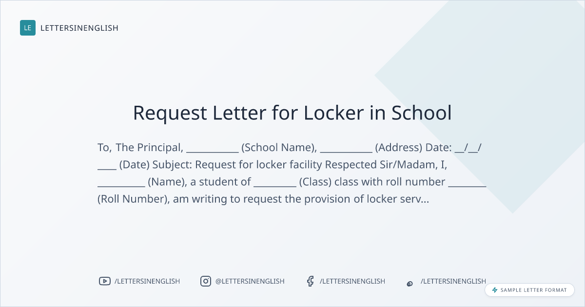 I am writing this letter in order to request you to kindly provide me with the locker services. I am in need of this service as __________ (Need to keep books/ Keep Accessories like equipment/ Mention your reason).