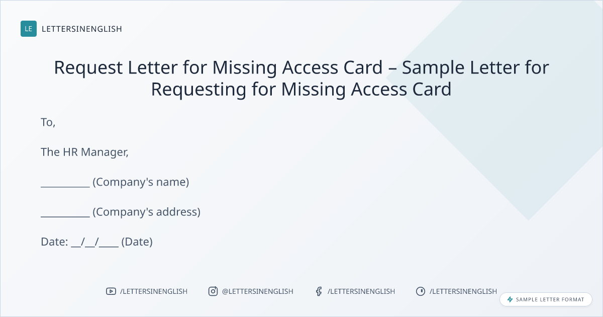 Request Letter for Missing Access Card – Sample Letter for Requesting for Missing Access Card