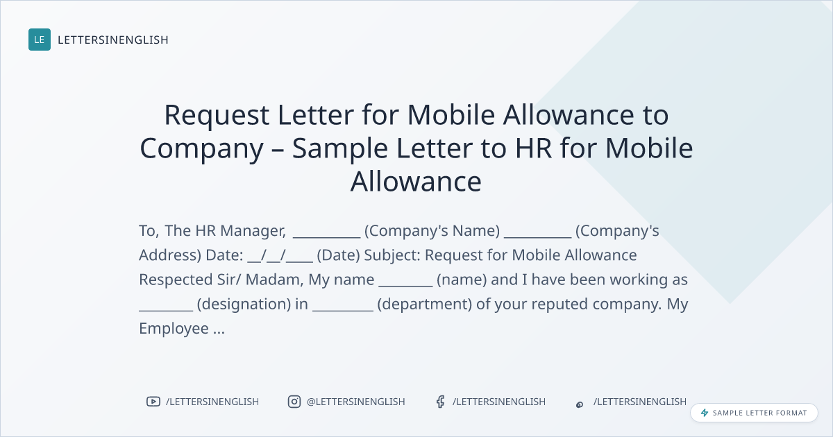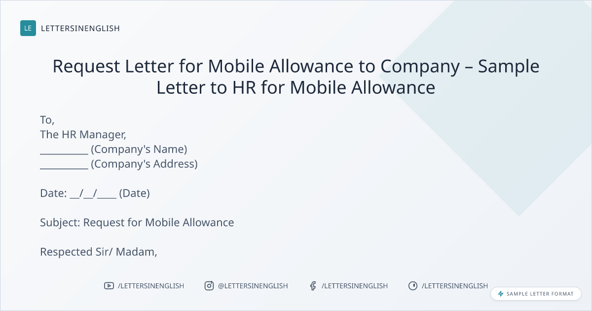Request Letter for Mobile Allowance to Company – Sample Letter to HR for Mobile Allowance