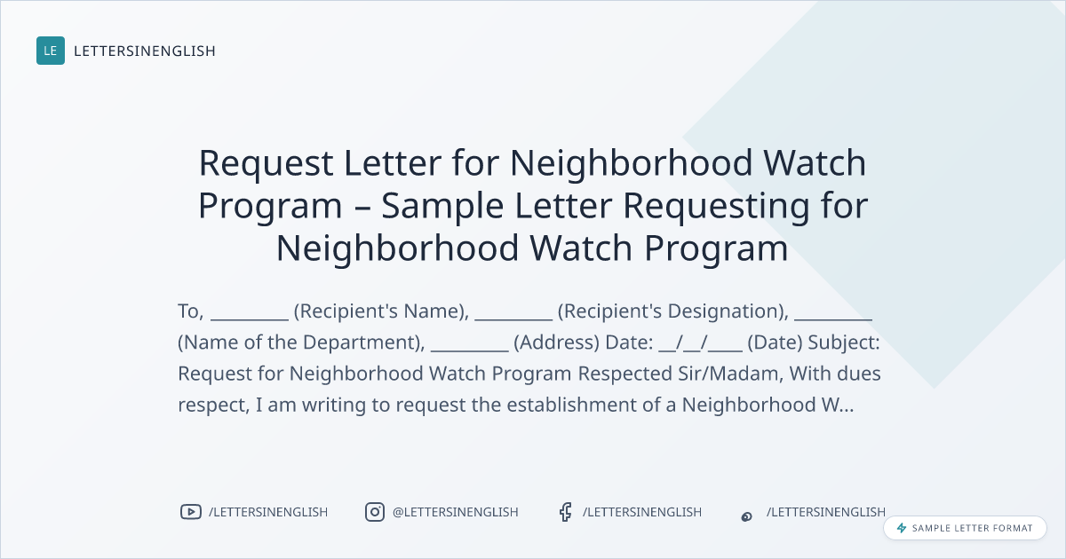 Request Letter for Neighborhood Watch Program – Sample Letter Requesting for Neighborhood Watch Program
