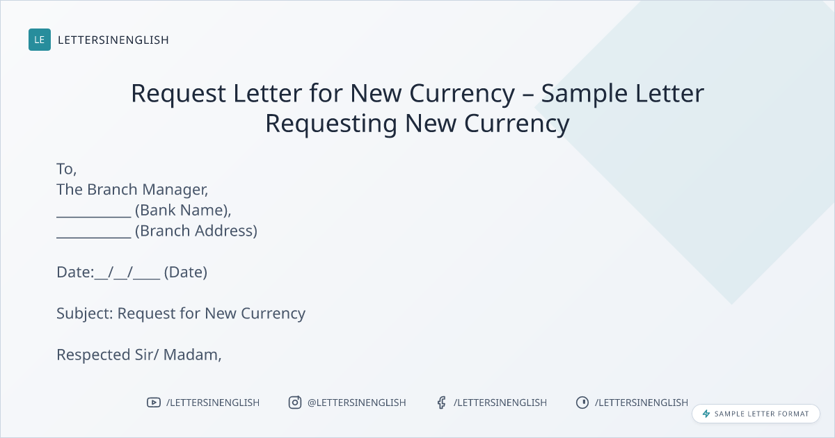 Request Letter for New Currency – Sample Letter Requesting New Currency