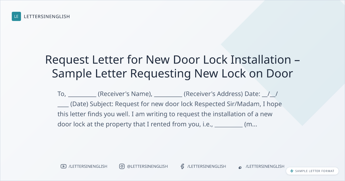 Request Letter for New Door Lock Installation – Sample Letter Requesting New Lock on Door