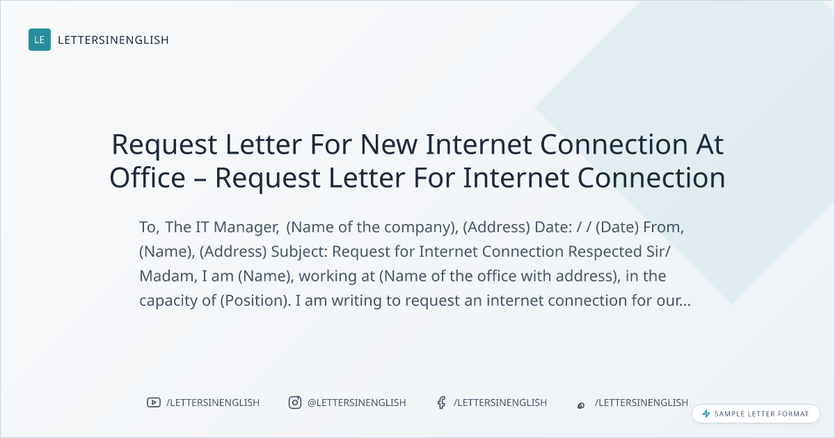 Sample Request Letter For Internet Connection At Office