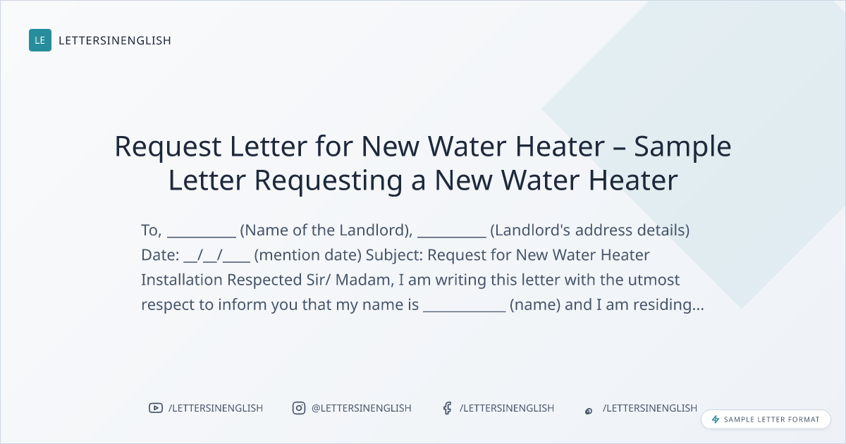 Request Letter for New Water Heater – Sample Letter Requesting a New Water Heater