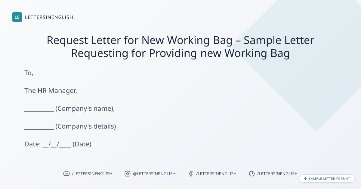 Request Letter for New Working Bag – Sample Letter Requesting for Providing new Working Bag