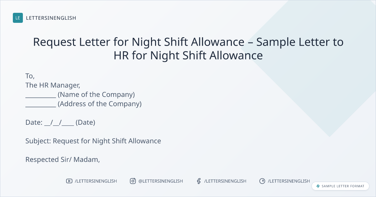 Sample Letter to HR for Night Shift Allowance