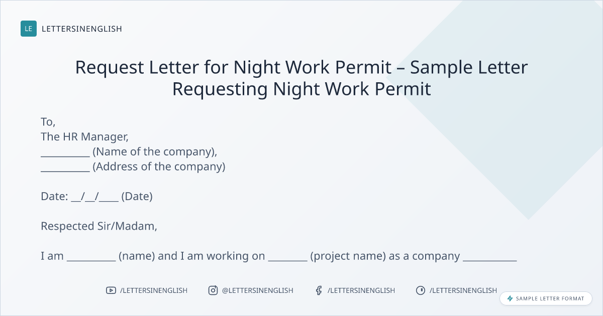 Request Letter for Night Work Permit – Sample Letter Requesting Night Work Permit
