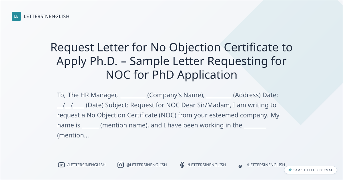 Request Letter for No Objection Certificate to Apply Ph.D. – Sample Letter Requesting for NOC for PhD Application
