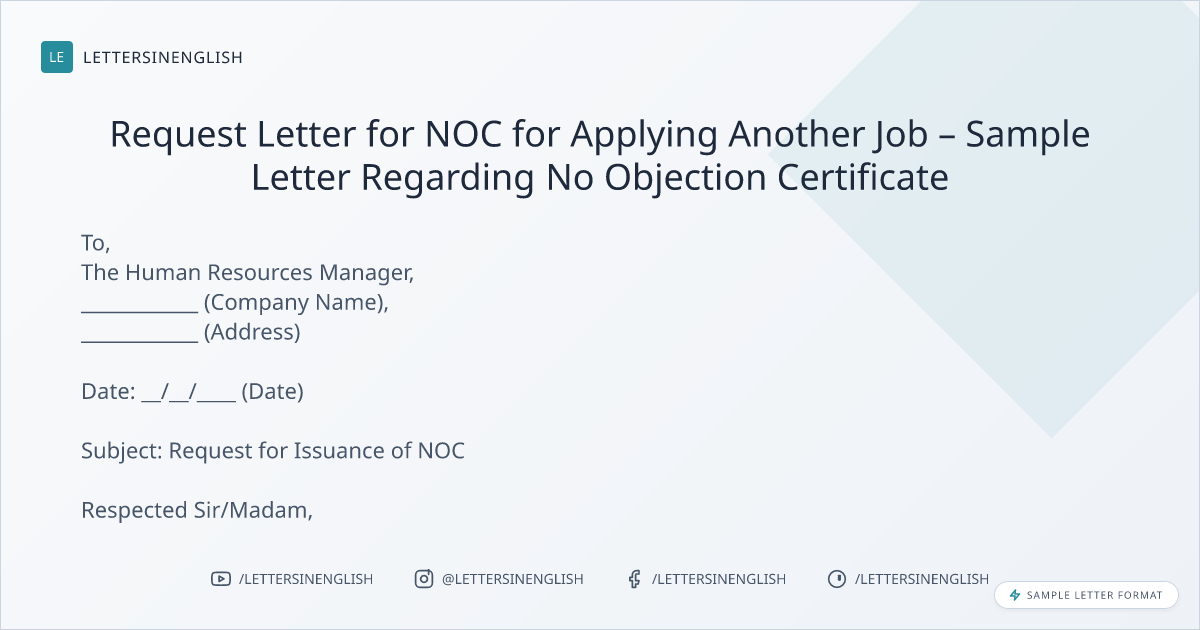 Request Letter for NOC for Applying Another Job – Sample Letter Regarding No Objection Certificate