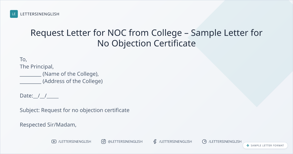 Request Letter for NOC from College – Sample Letter for No Objection Certificate