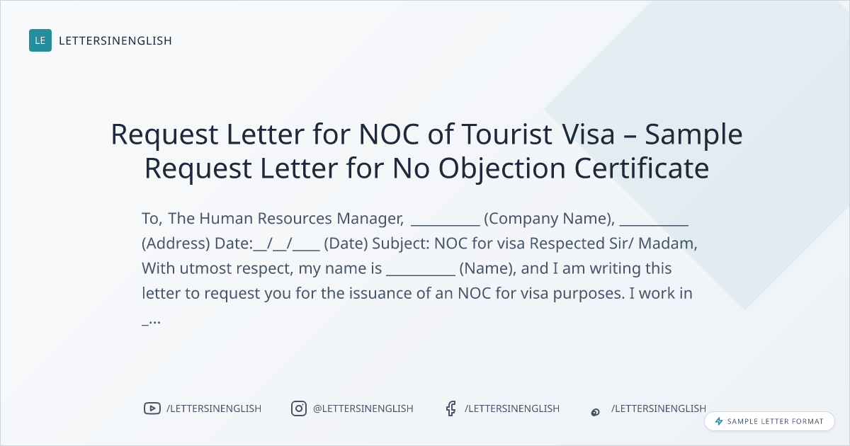 Request Letter for NOC of Tourist Visa – Sample Request Letter for No Objection Certificate