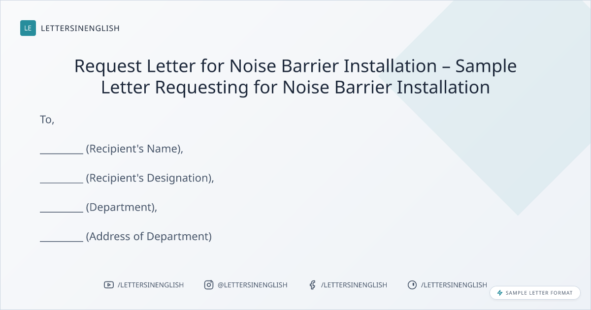 Request Letter for Noise Barrier Installation – Sample Letter Requesting for Noise Barrier Installation