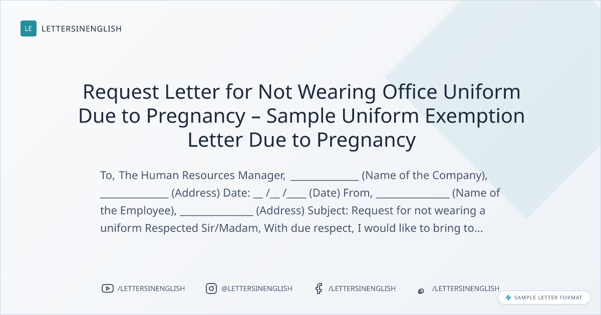 Request Letter for Not Wearing Office Uniform Due to Pregnancy – Sample Uniform Exemption Letter Due to Pregnancy