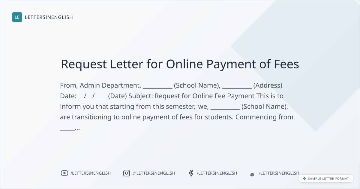 This is to inform you that from this semester, we __________ (School Name) are proceeding towards online payment of fees for students. From this semester, i.e. ______ (Year/ Semester) we will be accepting payment of fees in online mode only.