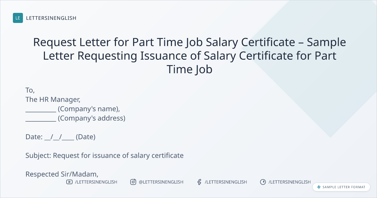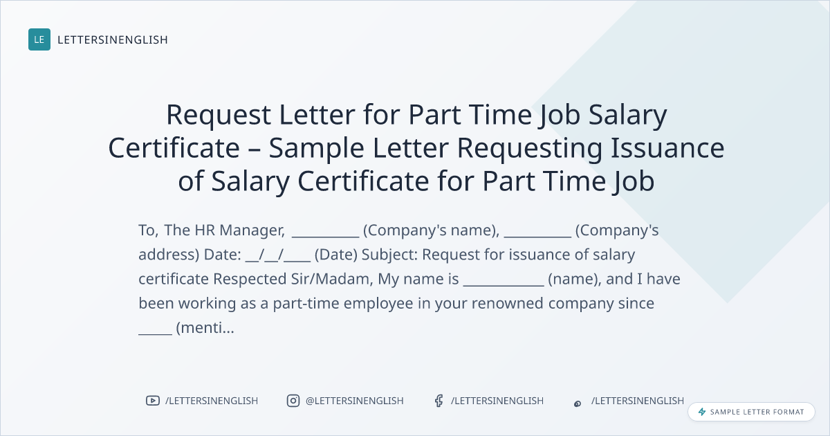 Request Letter for Part Time Job Salary Certificate – Sample Letter Requesting Issuance of Salary Certificate for Part Time Job