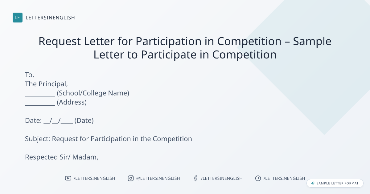 Request Letter for Participation in Competition – Sample Letter to Participate in Competition
