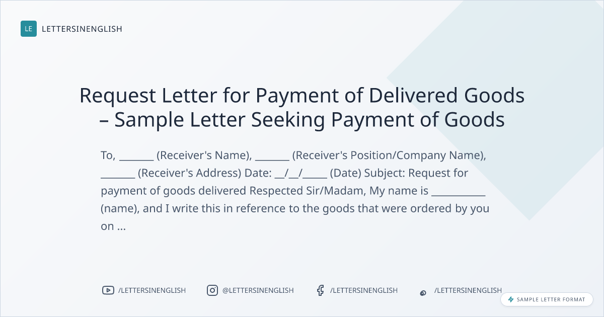 Request Letter for Payment of Delivered Goods – Sample Letter Seeking Payment of Goods