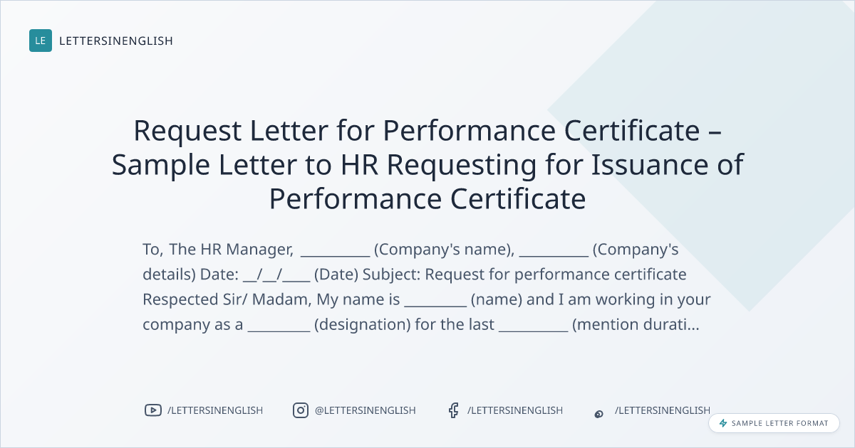 Request Letter for Performance Certificate – Sample Letter to HR Requesting for Issuance of Performance Certificate