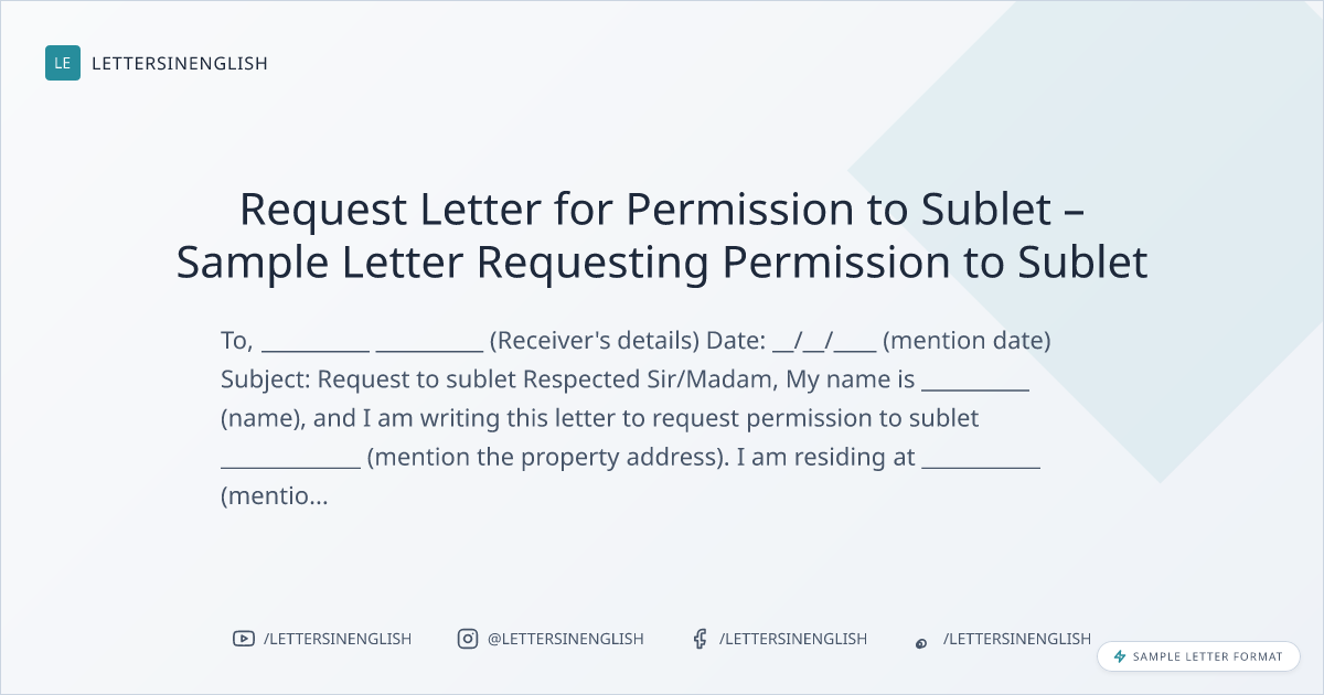 Request Letter for Permission to Sublet – Sample Letter Requesting Permission to Sublet