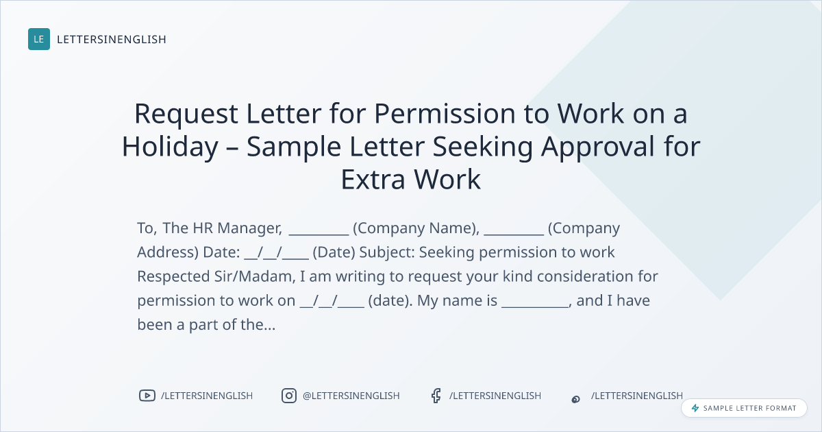 Request Letter for Permission to Work on a Holiday – Sample Letter Seeking Approval for Extra Work