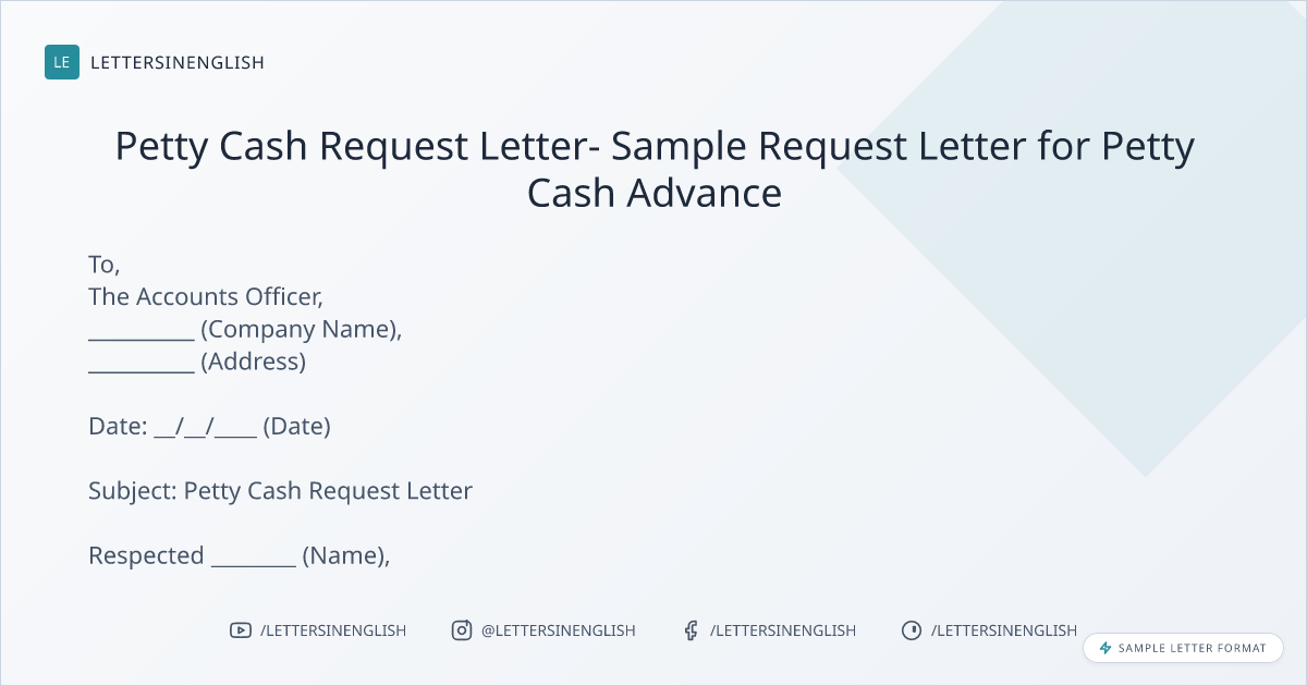 Petty Cash Request Letter- Sample Request Letter for Petty Cash Advance
