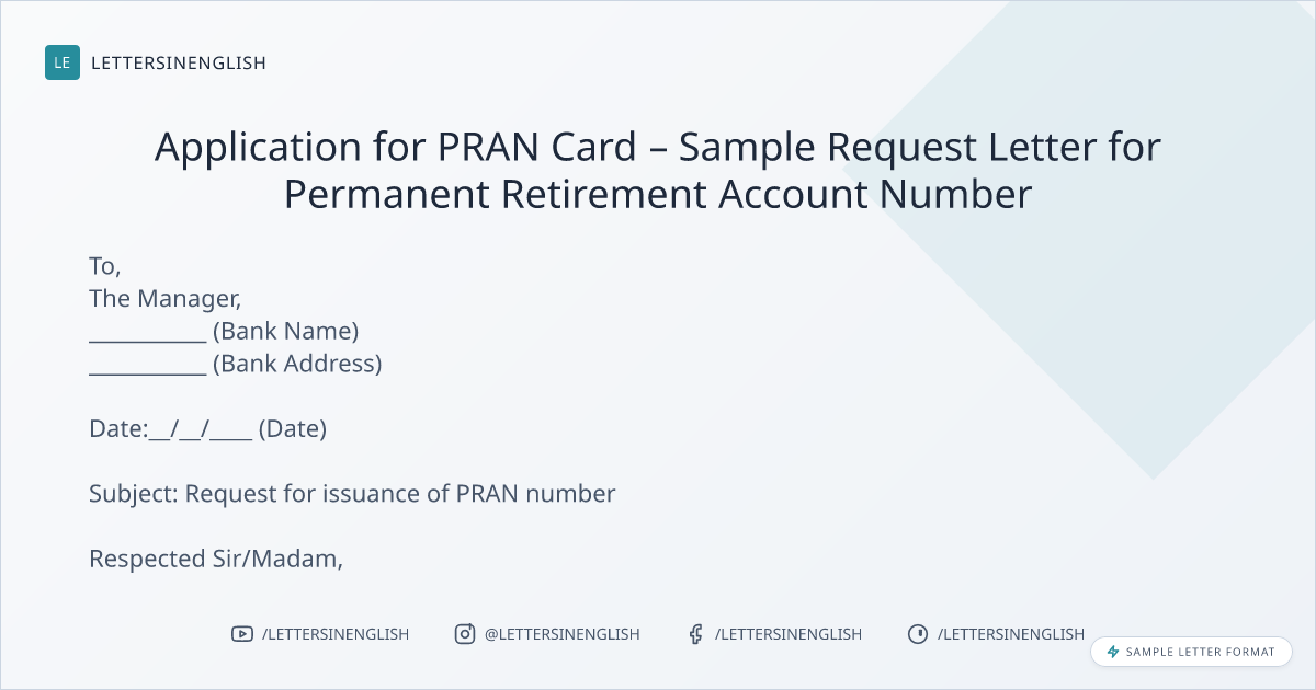 Application for PRAN Card – Sample Request Letter for Permanent Retirement Account Number