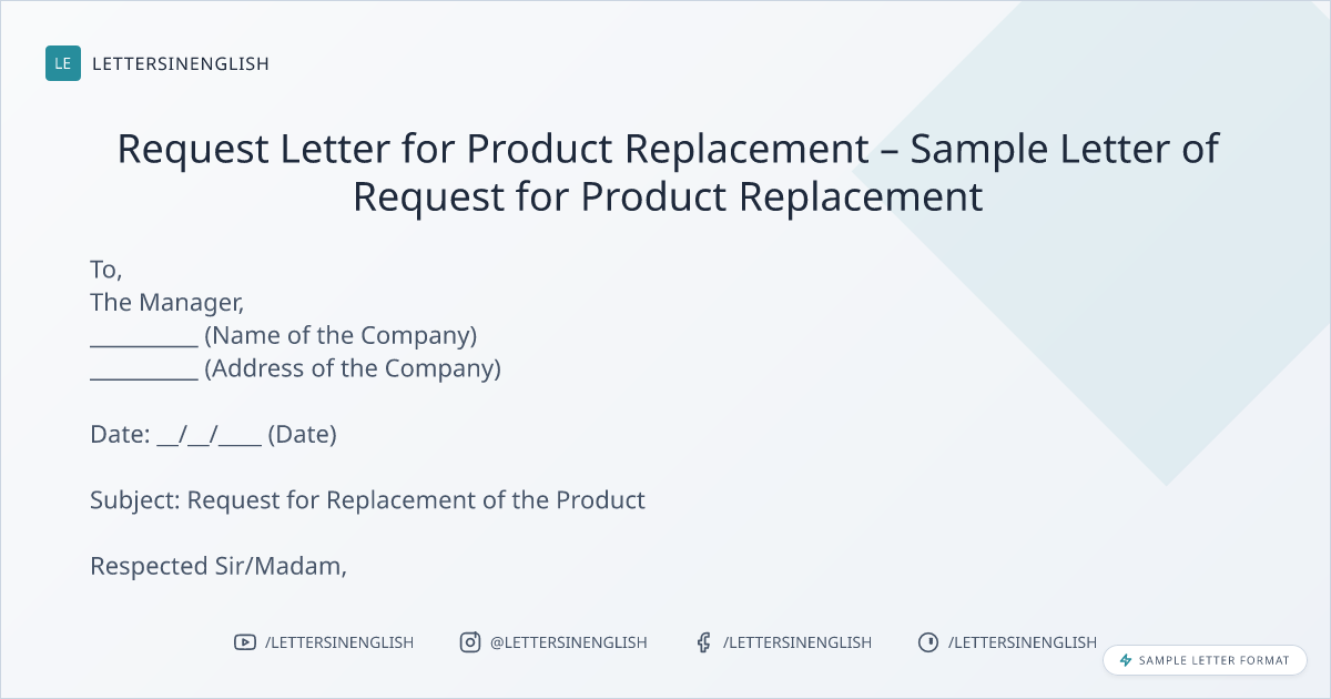 Request Letter for Product Replacement – Sample Letter of Request for Product Replacement