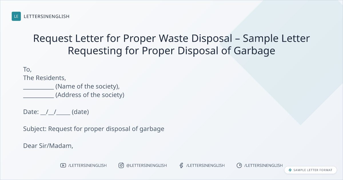 Request Letter for Proper Waste Disposal – Sample Letter Requesting for Proper Disposal of Garbage