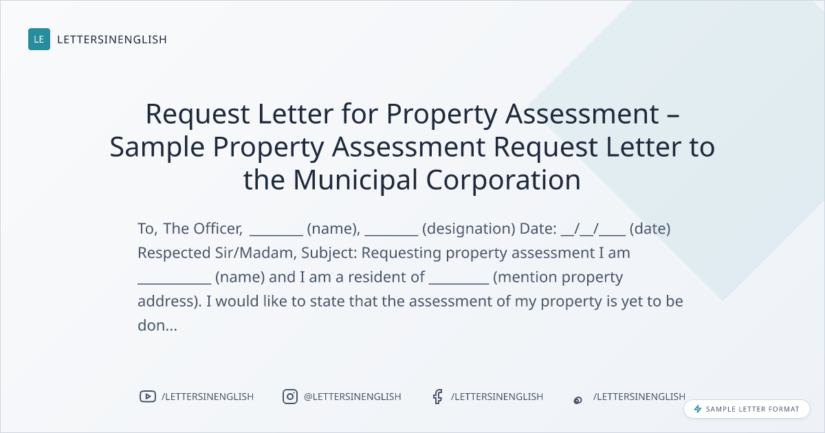 Request Letter for Property Assessment – Sample Property Assessment Request Letter to the Municipal Corporation