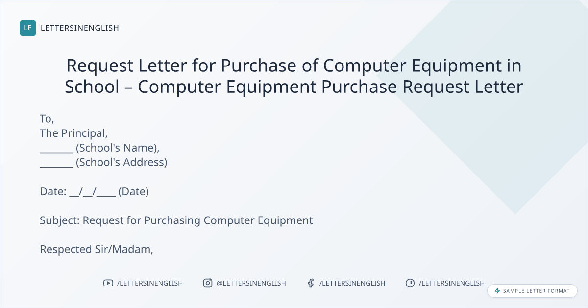 Request Letter for Purchase of Computer Equipment in School – Computer Equipment Purchase Request Letter