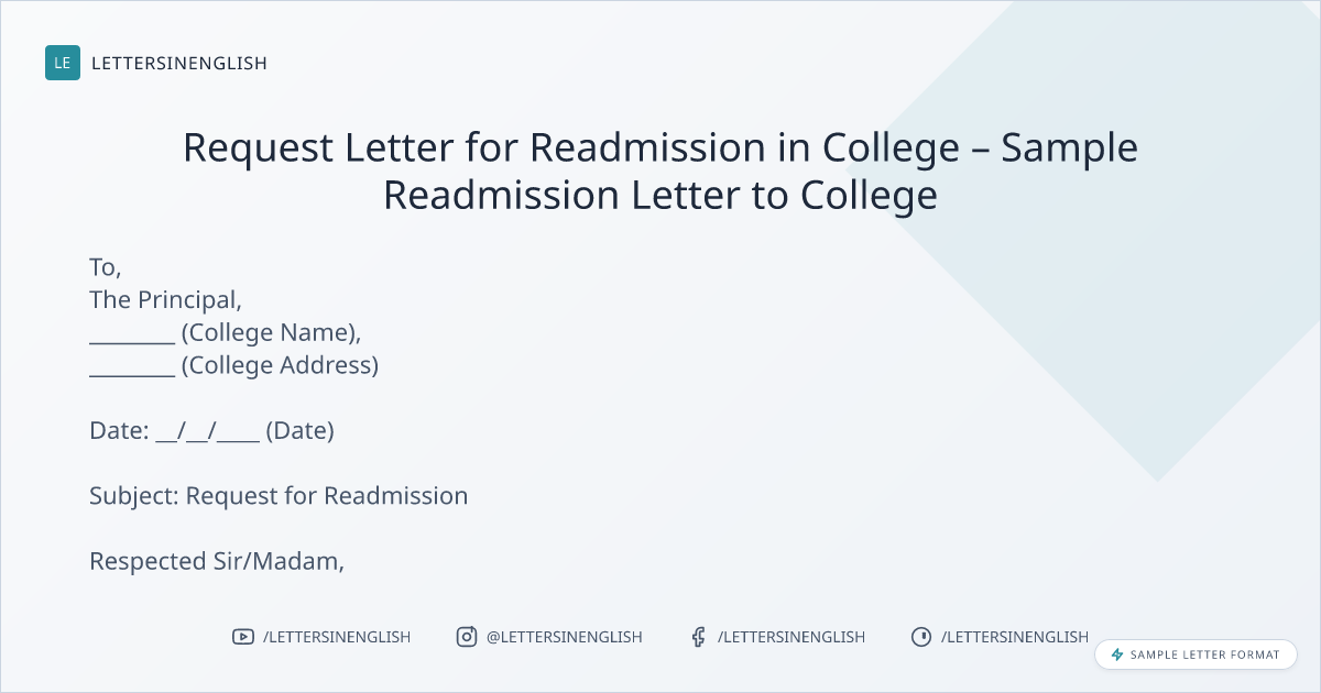 Request Letter for Readmission in College – Sample Readmission Letter to College