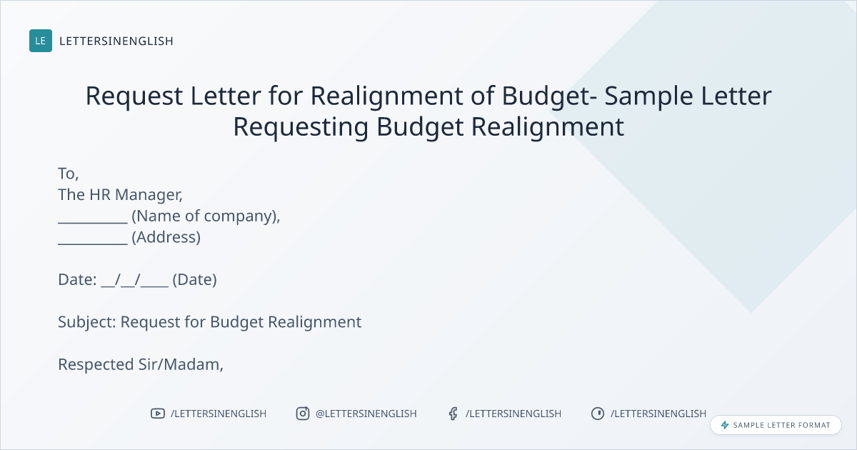 Request Letter for Realignment of Budget- Sample Letter Requesting Budget Realignment