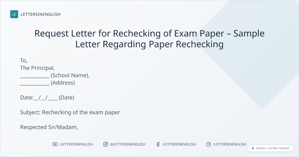 Request Letter for Rechecking of Exam Paper – Sample Letter Regarding Paper Rechecking