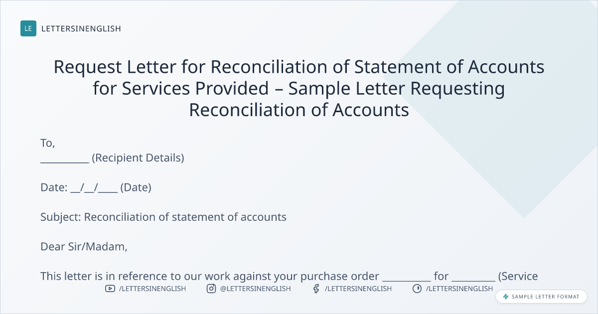 Request Letter for Reconciliation of Statement of Accounts for Services Provided – Sample Letter Requesting Reconciliation of Accounts