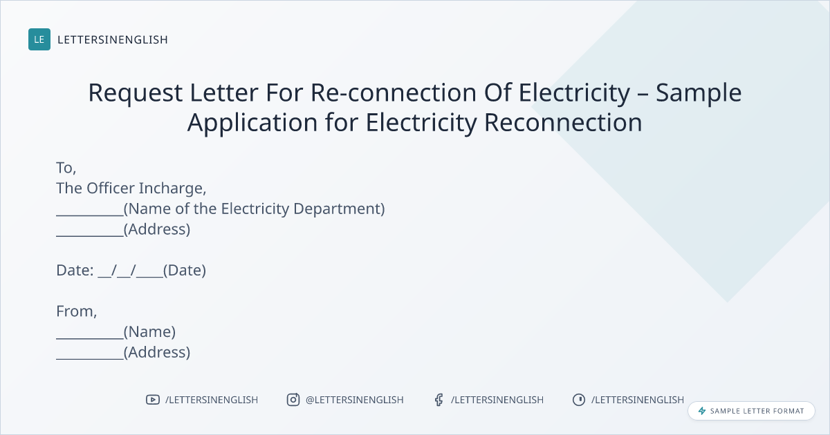 Request Letter For Re-connection Of Electricity – Sample Application for Electricity Reconnection