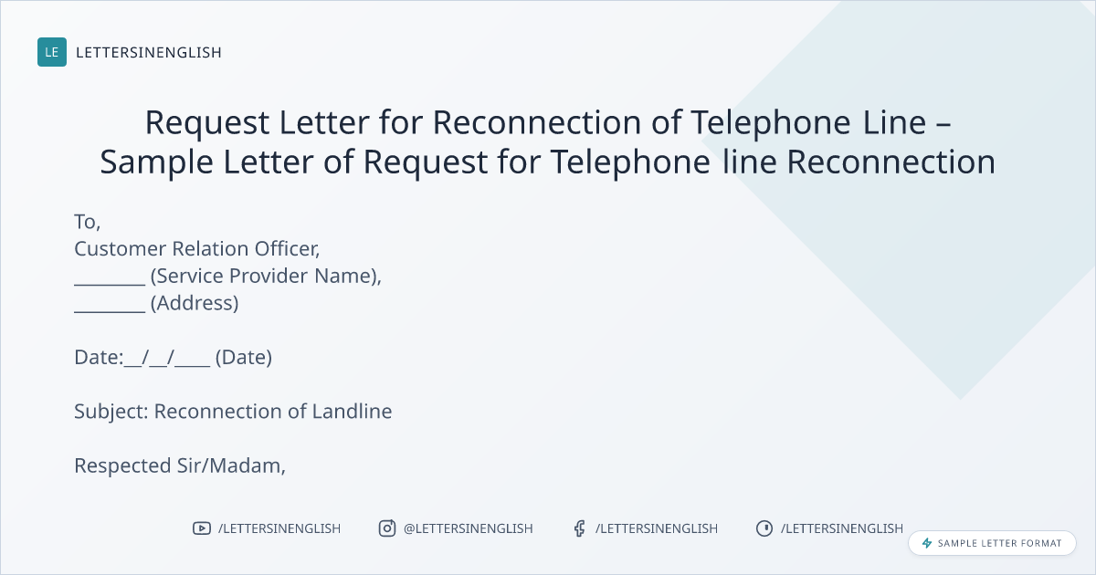 Request Letter for Reconnection of Telephone Line – Sample Letter of Request for Telephone line Reconnection