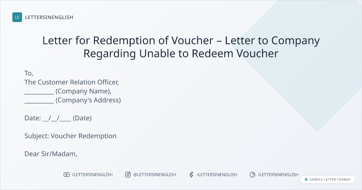 Letter for Redemption of Voucher – Letter to Company Regarding Unable to Redeem Voucher
