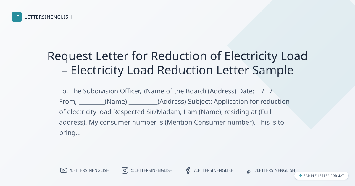 Request Letter for Reduction of Electricity Load – Electricity Load Reduction Letter Sample