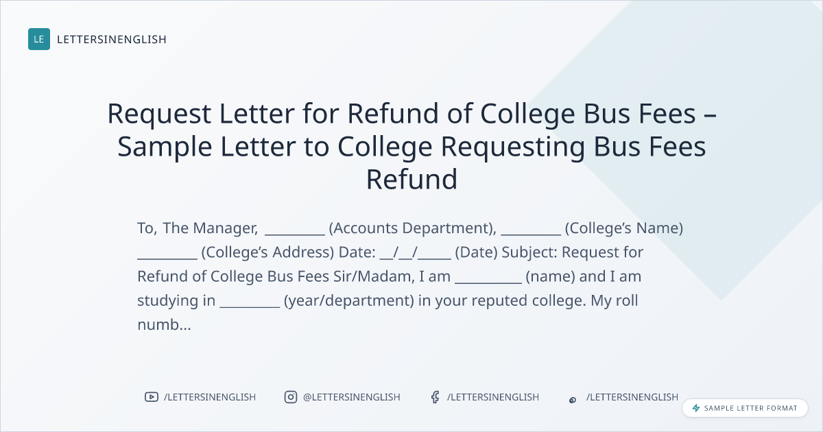 Request Letter for Refund of College Bus Fees – Sample Letter to College Requesting Bus Fees Refund