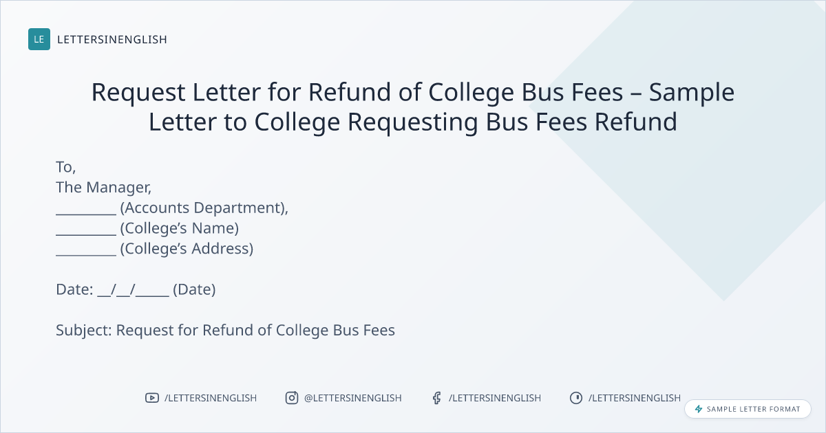 Sample Letter for Refund of College Bus Fees