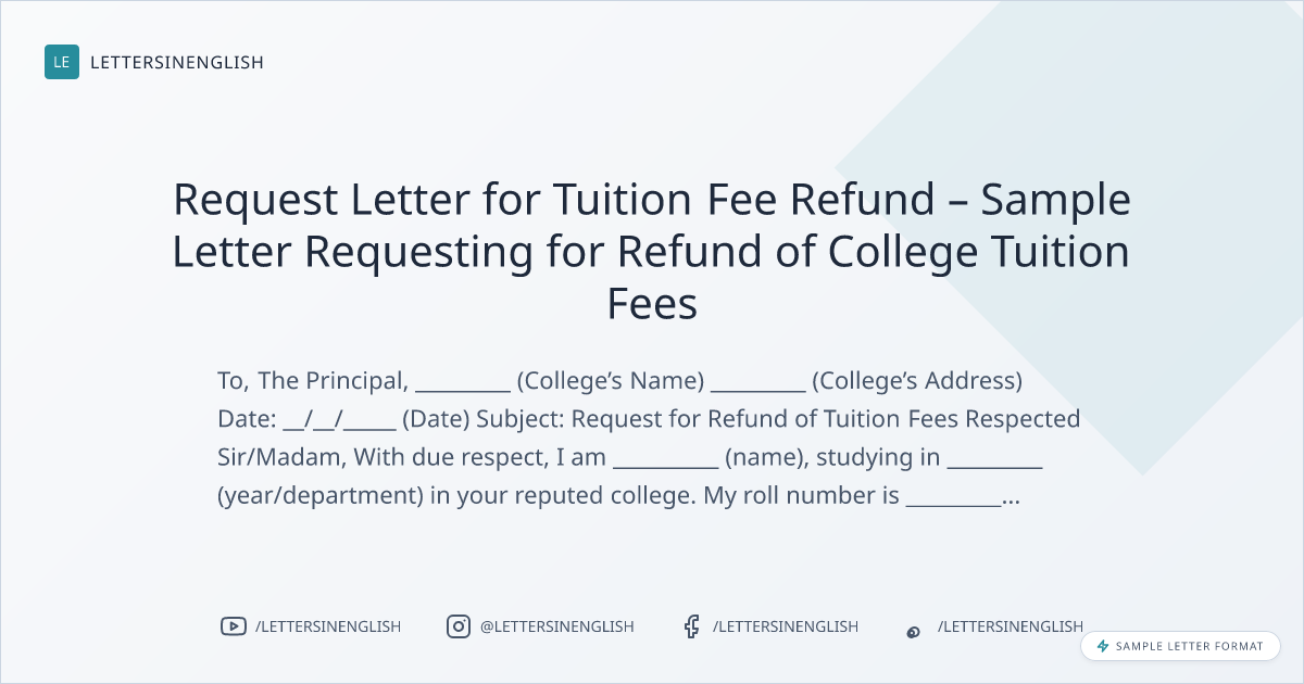Request Letter for Tuition Fee Refund – Sample Letter Requesting for Refund of College Tuition Fees