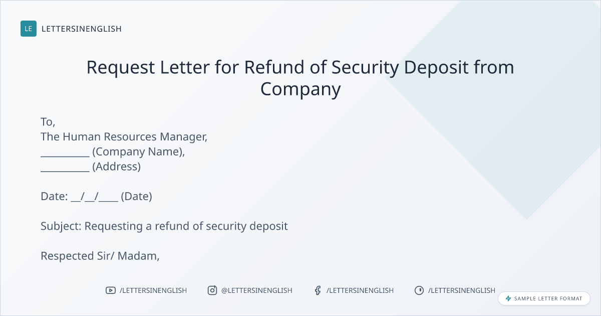 Request Letter for Refund of Security Deposit from Company