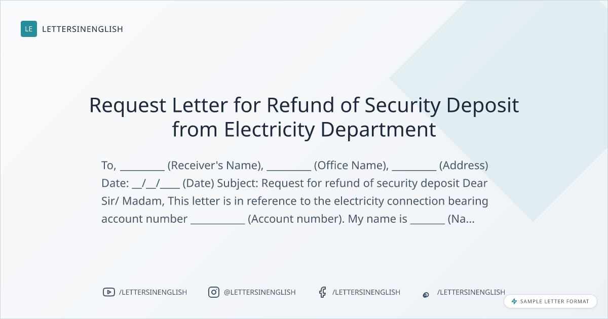 Request Letter for Refund of Security Deposit from Electricity Department