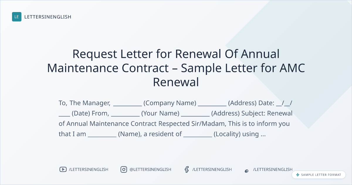 Request Letter for Renewal Of Annual Maintenance Contract – Sample Letter for AMC Renewal