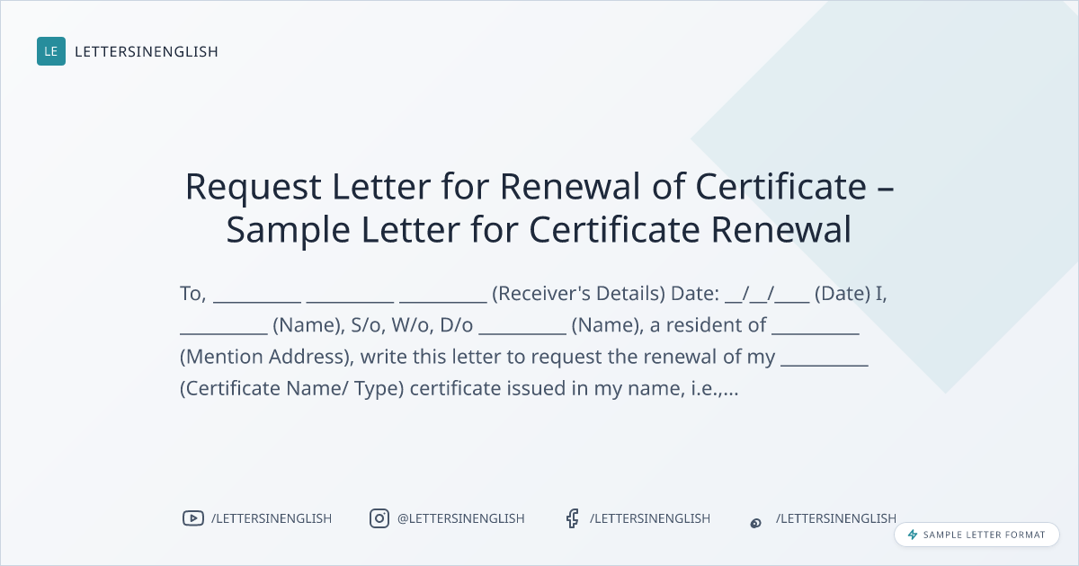 Request Letter for Renewal of Certificate – Sample Letter for Certificate Renewal
