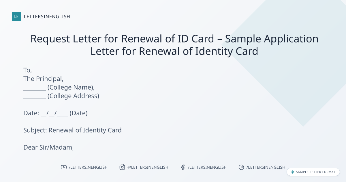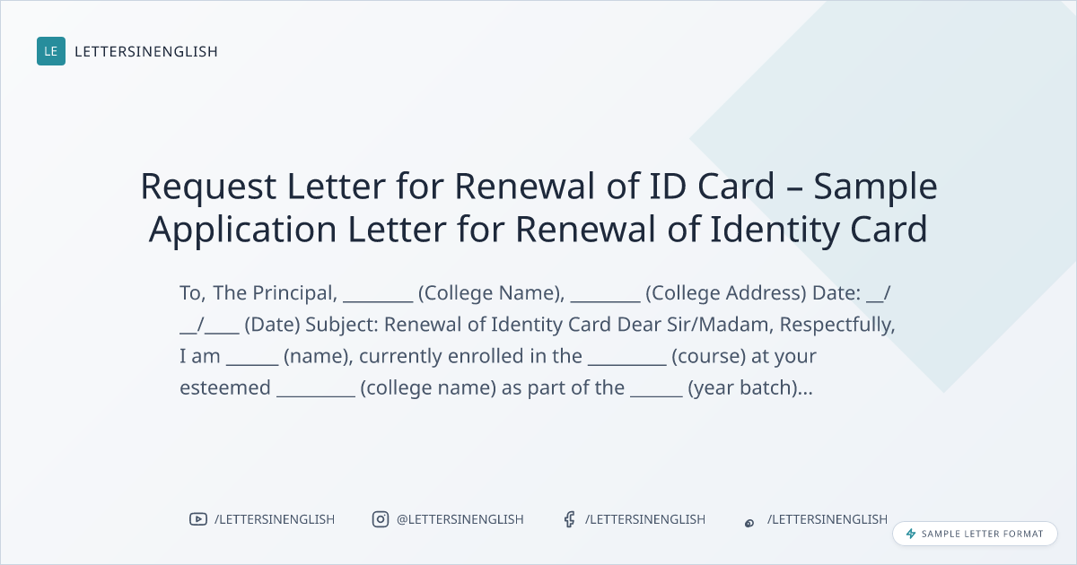Request Letter for Renewal of ID Card – Sample Application Letter for Renewal of Identity Card