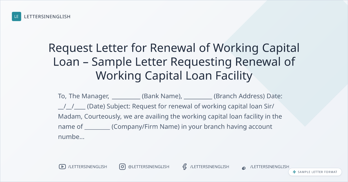 Request Letter for Renewal of Working Capital Loan – Sample Letter Requesting Renewal of Working Capital Loan Facility