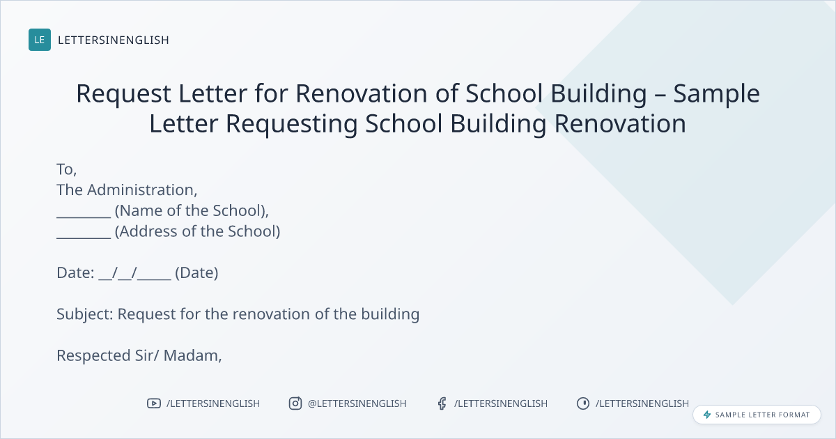 Request Letter for Renovation of School Building – Sample Letter Requesting School Building Renovation