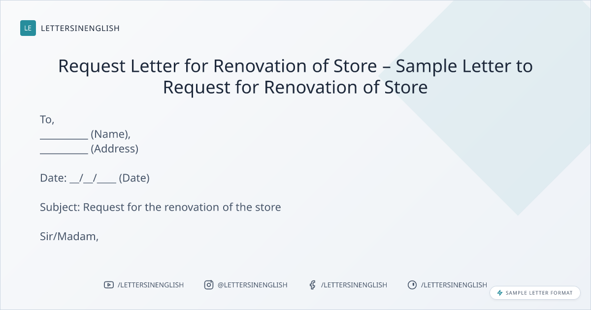 Request Letter for Renovation of Store – Sample Letter to Request for Renovation of Store