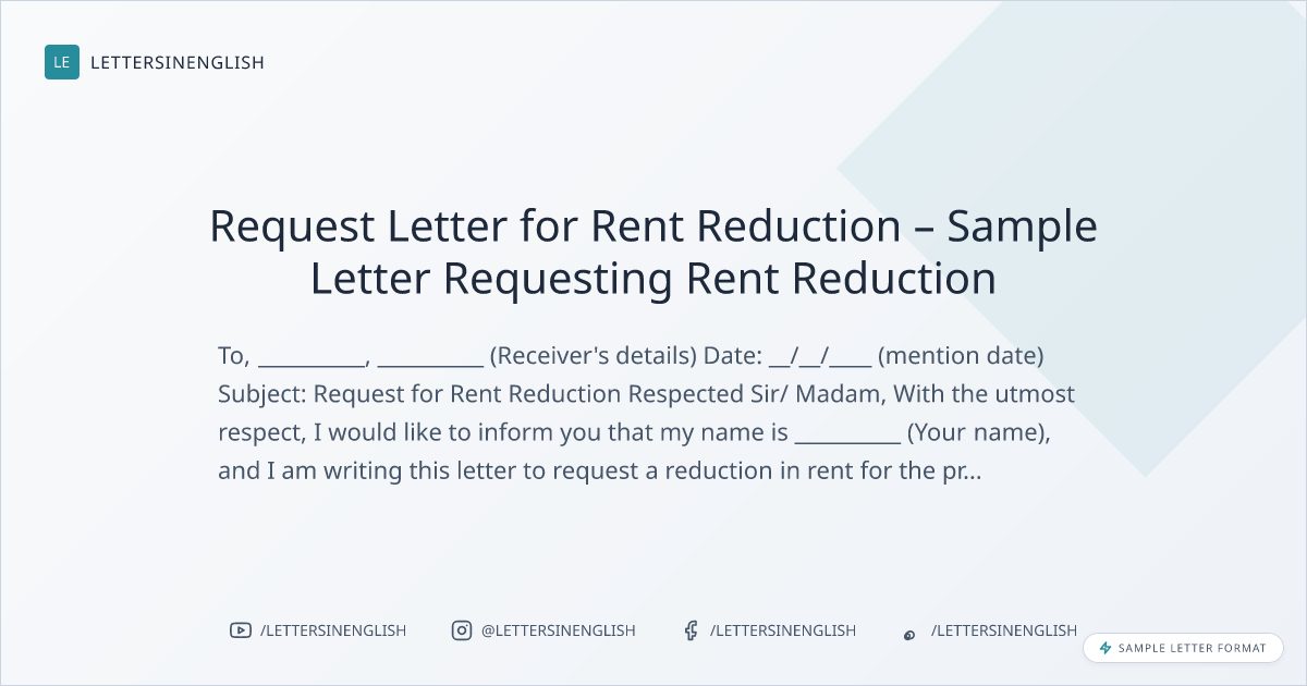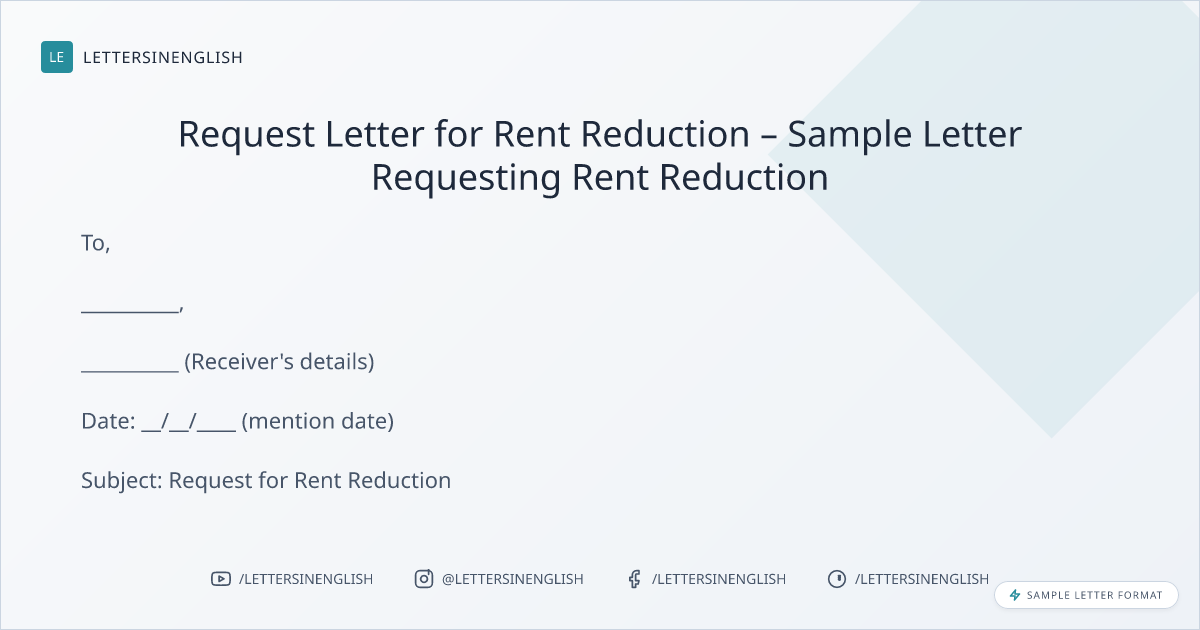With the utmost respect, I would like to inform you that my name is __________ (Your name), and I am writing this letter to request a reduction in rent for the property located at __________ (mention property address).